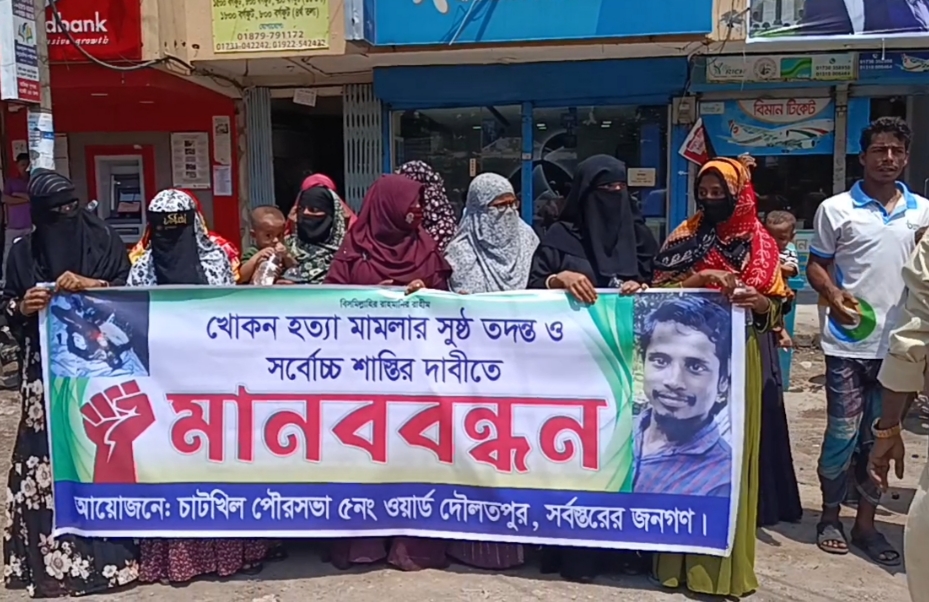 চাটখিলে দিনমজুর খোকন হত্যা,দোষীদের সর্বোচ্চ শাস্তির দাবিতে মানববন্ধন
