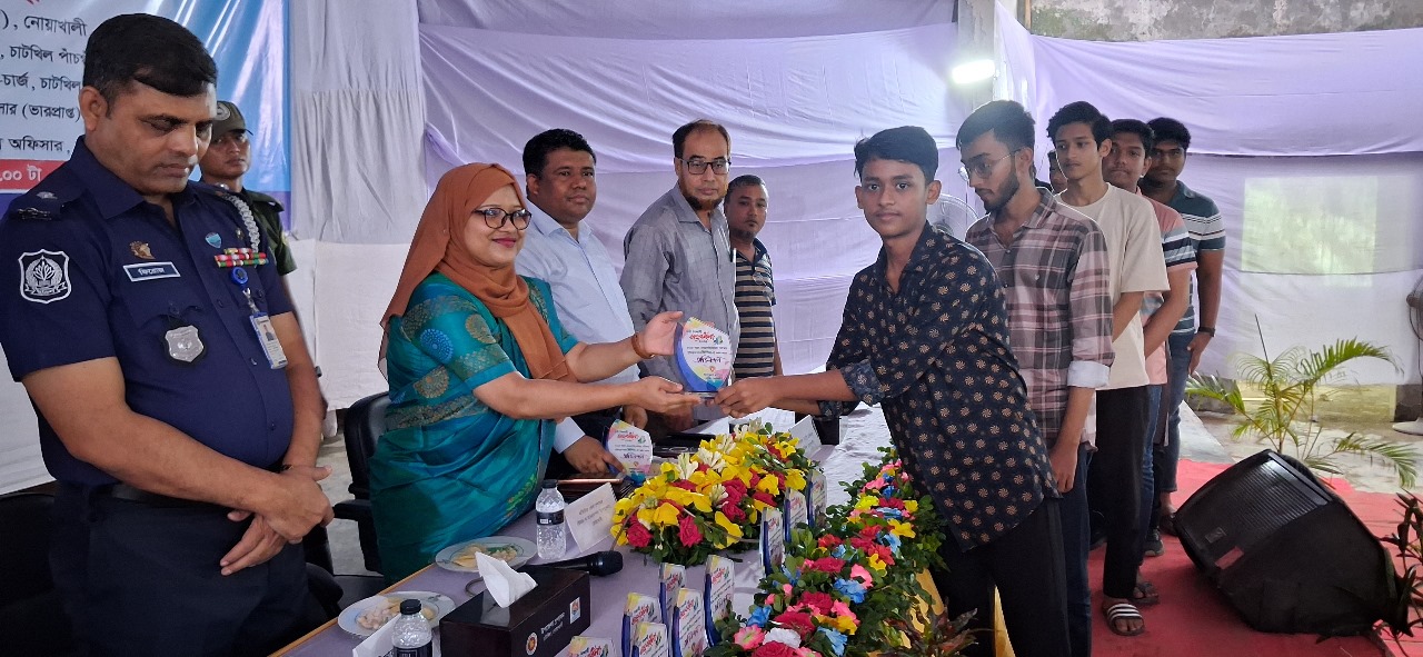 নোয়াখালীর চাটখিল উপজেলার এসএসসি/দাখিল/সমমান পরীক্ষায় জিপিএ ফাইভ প্রাপ্ত শিক্ষার্থীদের সংবর্ধনা দিয়েছে উপজেলা প্রশাসন। আজ বৃহস্পতিবার সকালে জেলা পরিষদ হলরুমে আয়োজিত অনুষ্ঠানে উপজেলা নির্বাহী অফিসারের সভাপতিত্বে ও উপজেলা সমাজসেবা অফিসার মোহাম্মদ আলী এবং মহিলা বিষয়ক অফিসার কামরুন নাহার এর যৌথ সঞ্চালনায় প্রধান অতিথি হিসেবে উপস্থিত ছিলেন নোয়াখালী জেলা অতিরিক্ত জেলা প্রশাসক (উন্নয়ন ও মানবসম্পদ ব্যবস্থাপনা) তাসলিমুন নেসা।