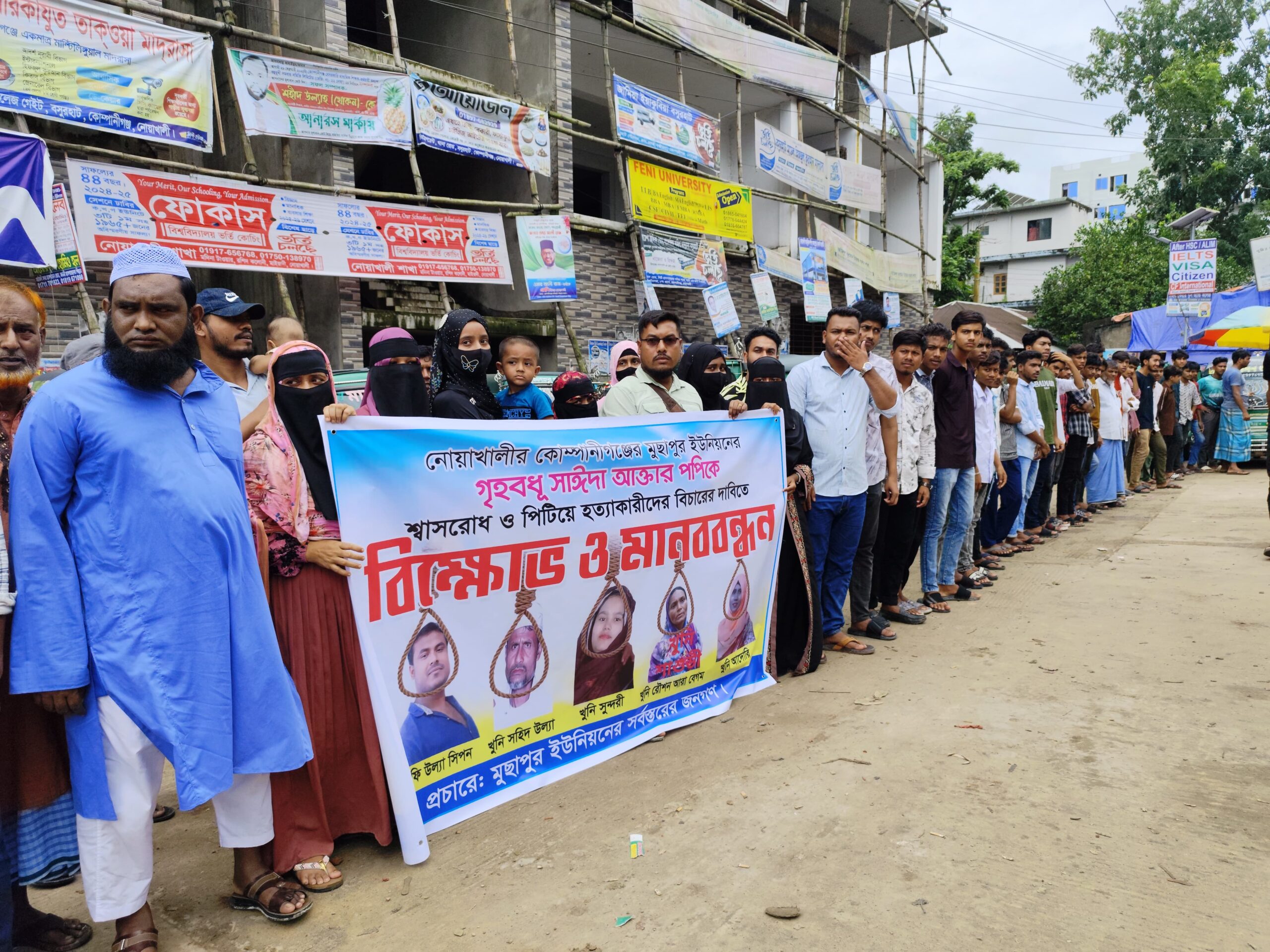 নোয়াখালী প্রতিনিধি নোয়াখালীর কোম্পানীগঞ্জে যৌতুকের জন্য গৃহবধূ সাঈদা আক্তার পপি (২৫) হত্যার বিচার দাবিতে মানববন্ধন ও বিক্ষোভ করেছেন এলাকার বাসিন্দারা।বুধবার